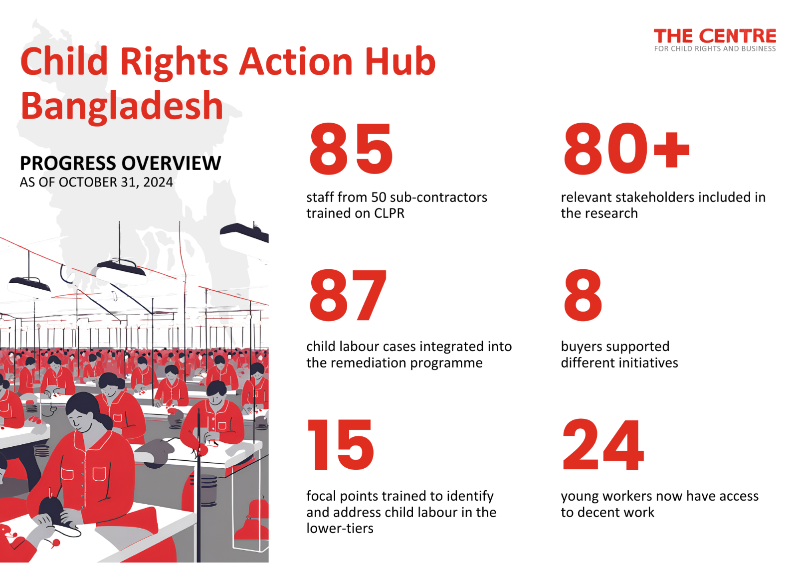 To address this issue, The Centre has launched the Child Rights Action Hub in Bangladesh, specifically for the RMG sector. The Action Hub aims to empower fashion brands and retailers to engage lower-tier suppliers in preventing and addressing child labour.