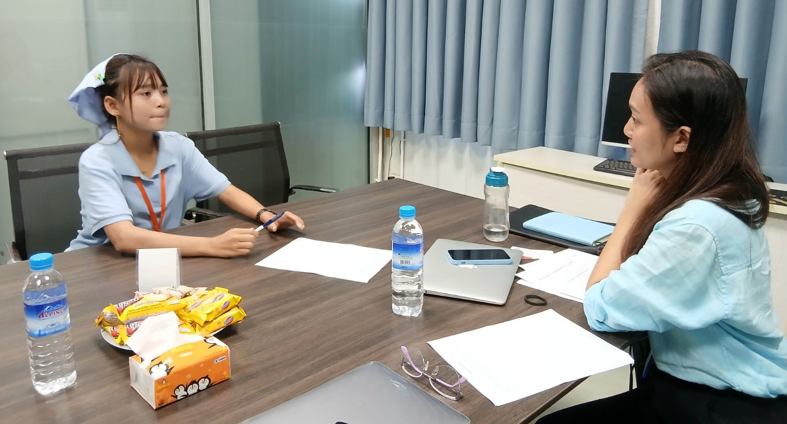 The Centre's Project Manager interviewing on of the young workers