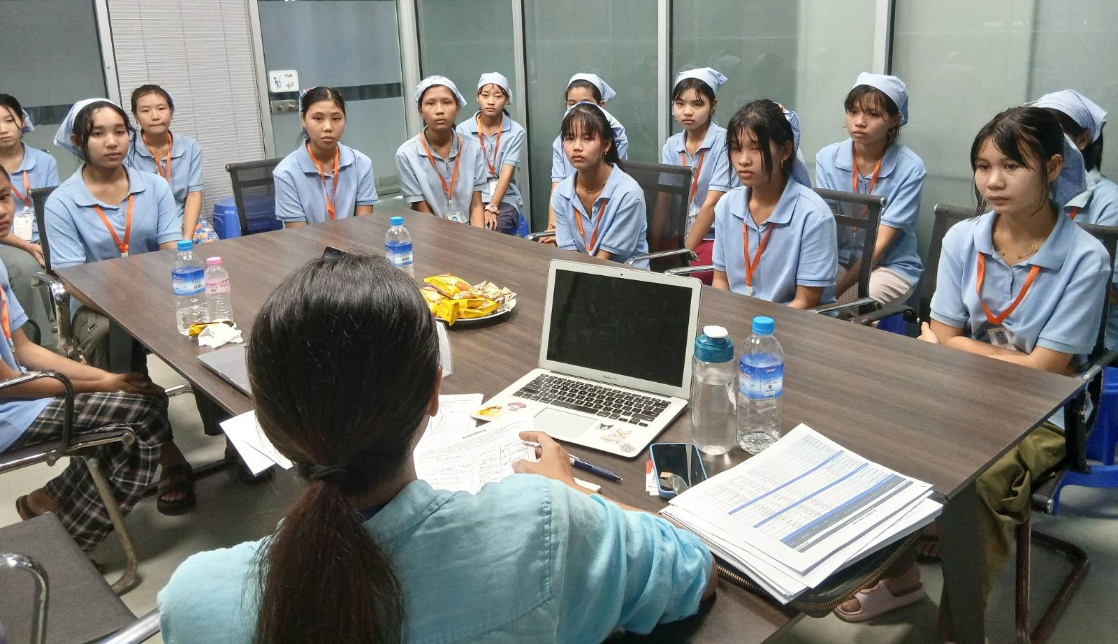 The Centre's Myanmar Project Manager during a focus group discussion with the factory's young workers