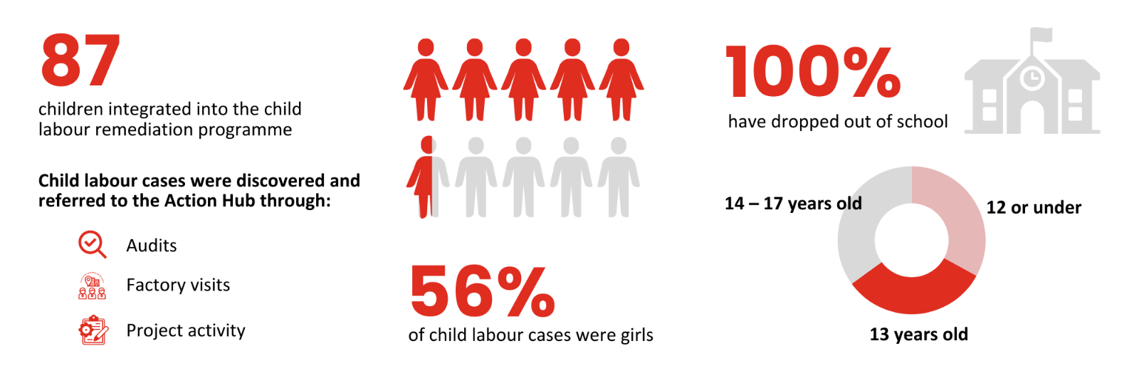 Supporting the Action Hub’s remediation efforts for child labour cases, which includes initial contact with the child, their family, and their school, as well as monitoring cases