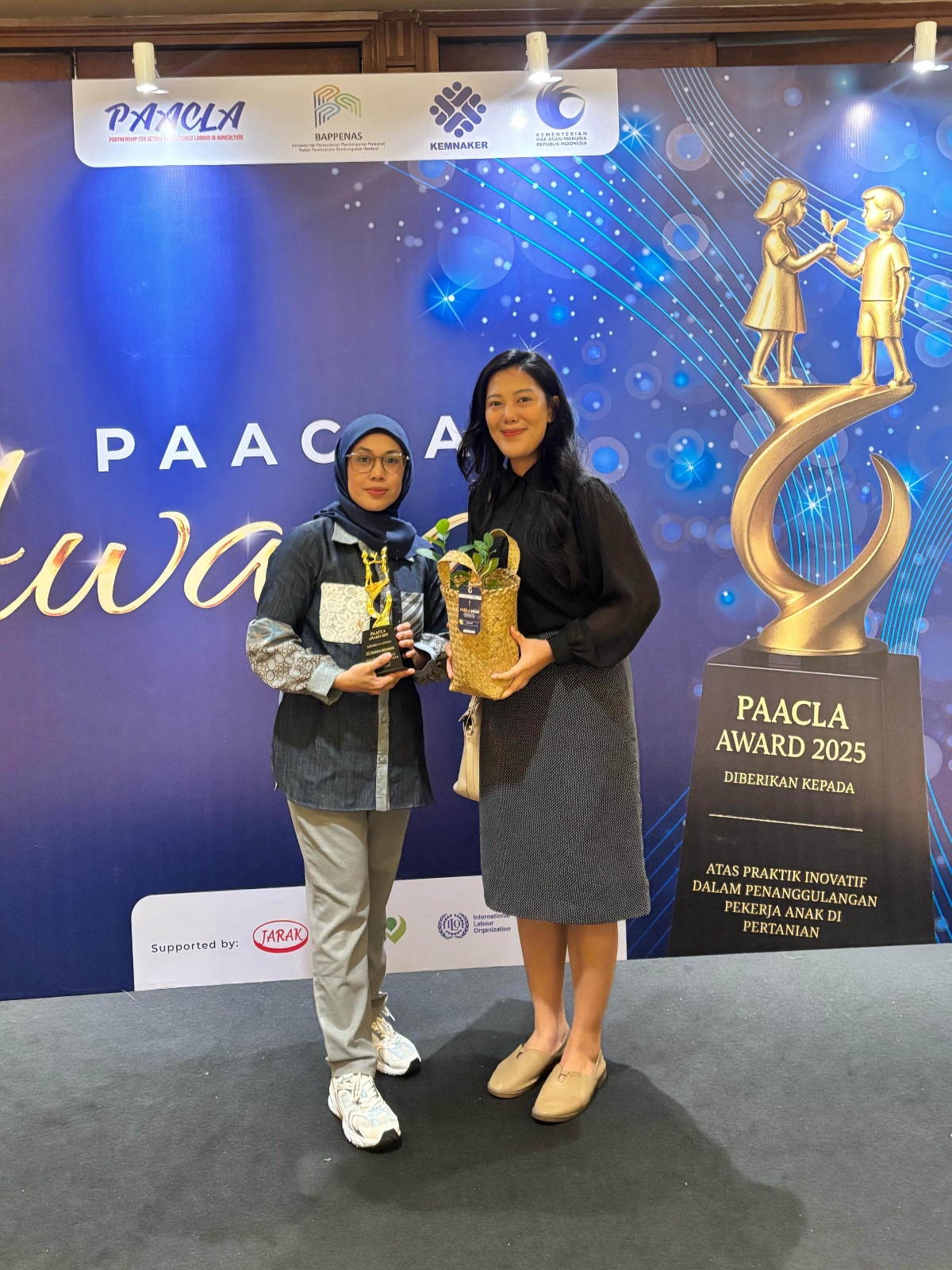 At the award ceremony, Pribudiarta Nur Sitepu, Acting Deputy for Special Child Protection, underscored the urgency of our work, noting that child labour cases in Indonesia surged from 1.01 million in 2023 to 1.27 million in 2024. His message was clear: partnerships across government, business and civil society are more important than ever to eliminate child labour.