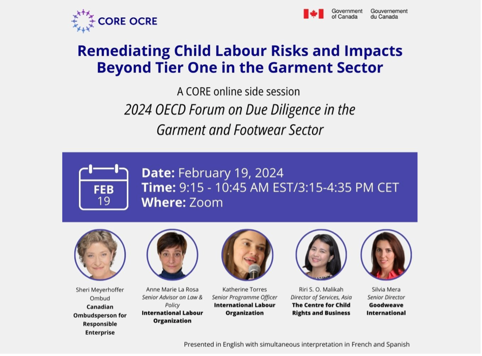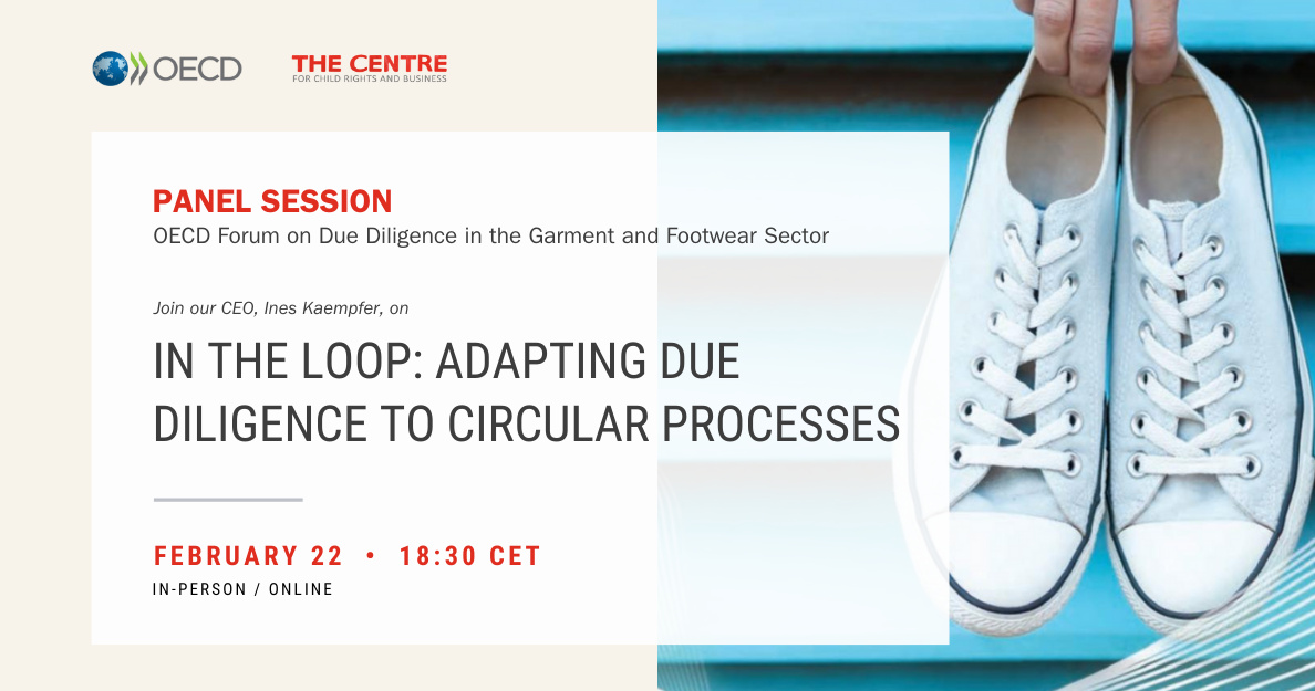 The Centre's CEO, Ines Kaempfer, and Senior VP, Mark Robertson, will be participating in the OECD Forum on Due Diligence in the Garment and Footwear Sector in Paris. The event is scheduled for February 22 at 18:30 CET. During the forum, Ines will speak in a roundtable discussing sectoral risks, particularly child labour in the circular garment and textile value chain. Learn how brands can effectively engage with their lower tiers in the informal sector to create positive impacts for children and their families. You can also attend the forum in person or register online using this link.
