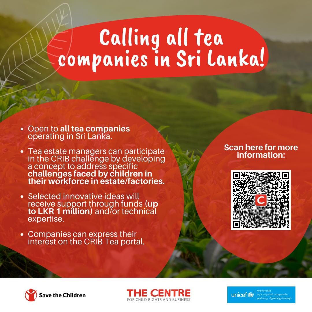 Join The Centre for Child Rights and Business, in collaboration with Save the Children and UNICEF, in Round 4 of our Child Rights in Business (CRIB) Challenge, exclusively for tea companies based in Sri Lanka!