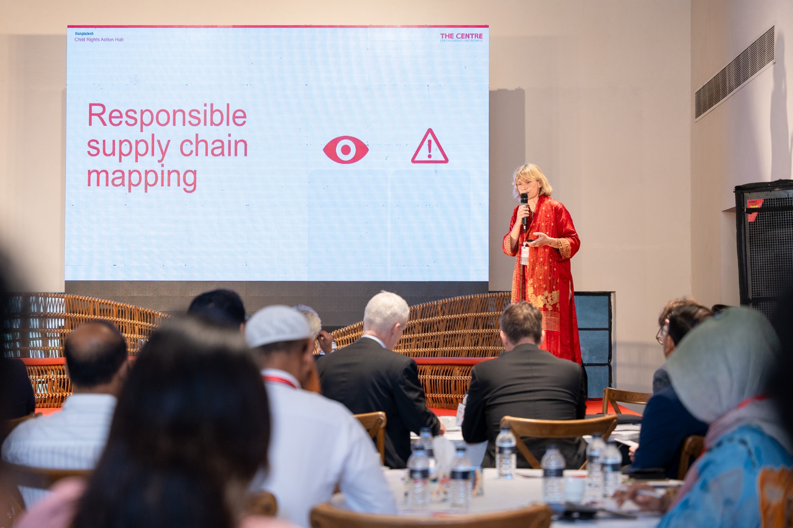Photo: The Centre's CEO Ines Kaempfer speaking at the one year anniversary event of the Child Rights Action Hub Bangladesh in Dhaka on May 19, 2025