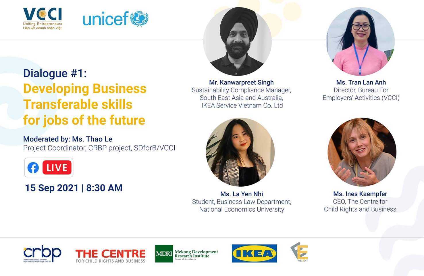The Centre for Child Rights and Business is pleased to be taking part in the panel discussion on “Developing business transferable skills for jobs of the future” under Dialogue #1 on Wednesday 15 September 2021 at 8:30am Vietnam local time.
