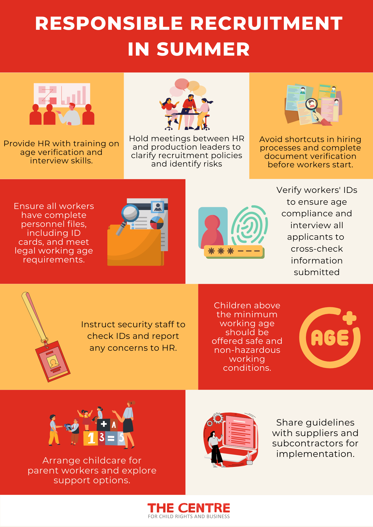 • Provide refresher training to HR staff on age verification, including ID card identification and interview skills.