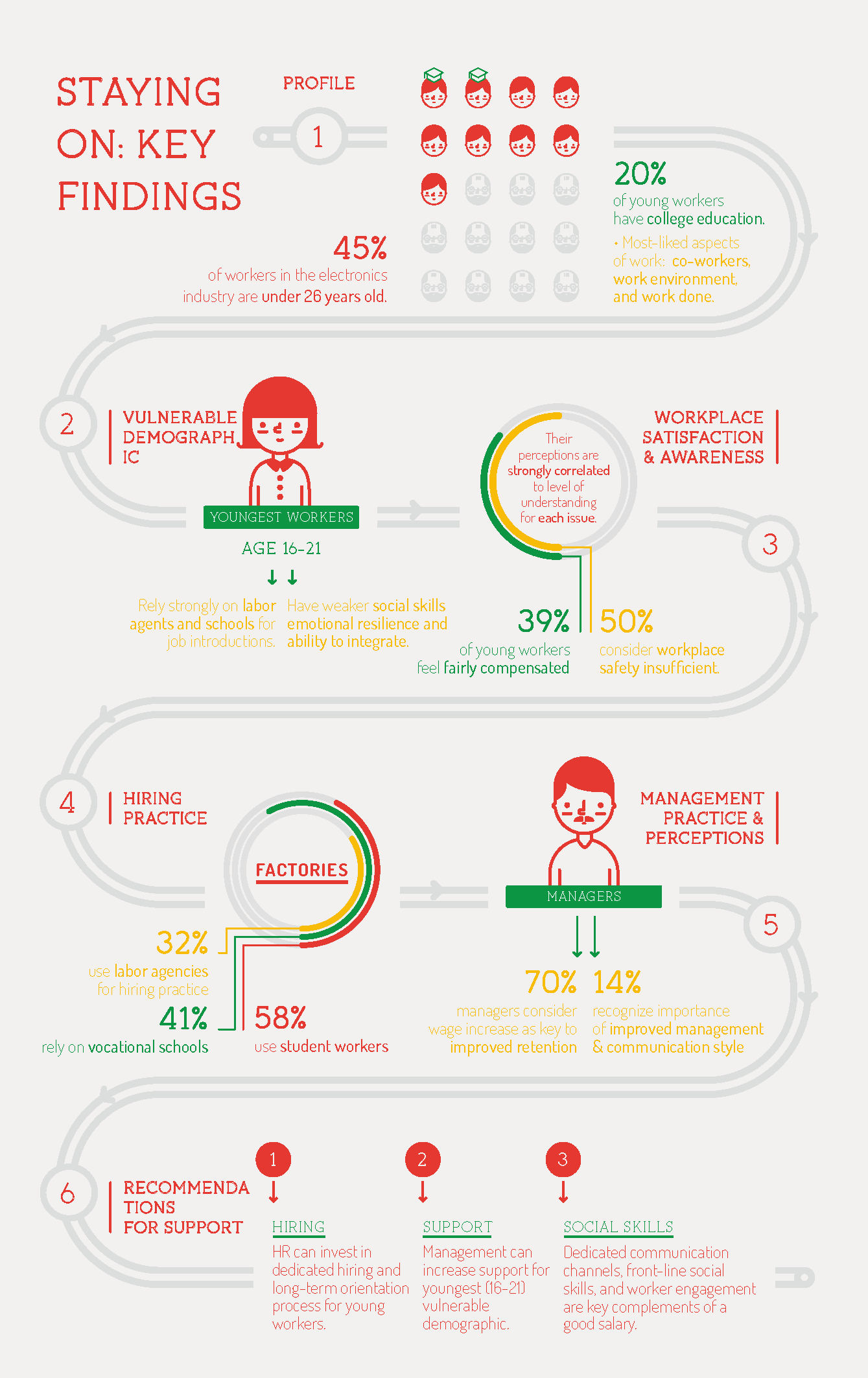 In the summer of 2014, CCR CSR (known as The Centre for Child Rights and Business since 2021) cooperated with China Electronic Standardization Association (CESA) to conduct detailed research on the growing challenges in the electronics manufacturing sector with regards to effective management and retention of the young workforce (under 26 years old).