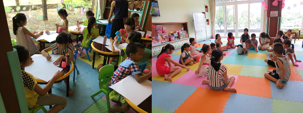 The space welcomes children who are usually left-behind but are reunited with their parents during the summer and those who live with their parents in the factory city on a permanent basis but are in need of a place to stay while their parents are working.