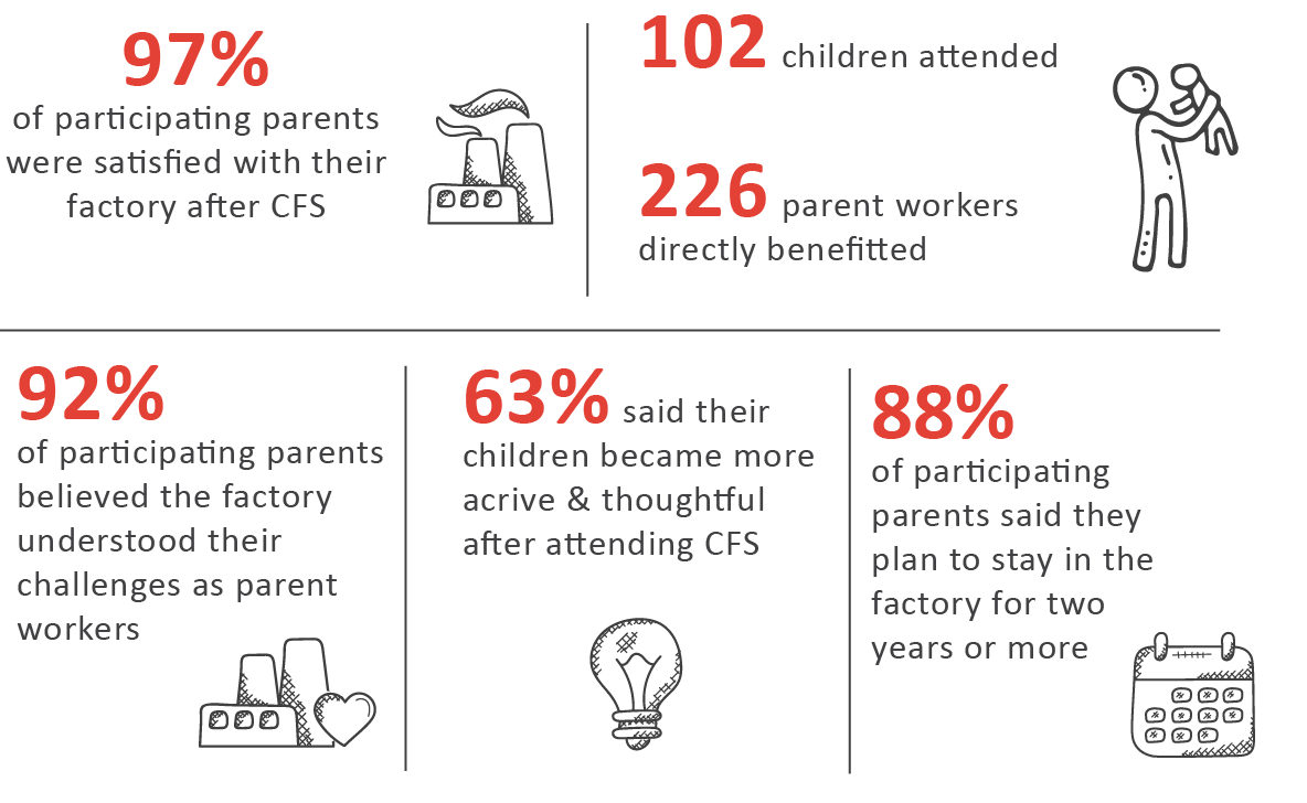 In late 2016, The Centre conducted a study on the impact of the CFS in four out of five of those factories, and found that CFS brought positive impact in the following areas: